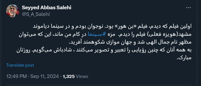 به گزارش خبرگزاری فارسیرو، سید عباس صالحی وزیر فرهنگ و ارشاد اسلامی با انتشار پیامی در شبکه اول نوجوانی فیلم را در سینما دیامون مشهد (هویزه فعلی) دید روزت مبارک.”