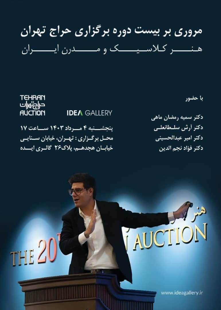 بیستمین دوره حراج تهران ویژه «هنر معاصر ایران» جمعه 24 تیرماه برگزار شد و با فروش 190 میلیارد و 476 میلیون تومان به پایان رسید. علاقه مندان برای حضور در نشست «بررسی حراج تهران» می توانند روز پنجشنبه 13 مرداد ساعت 17 به گالری ایده واقع در تهران، خیابان کریمخانزند، خیابان هفدهم، پلاک 26 مراجعه کنند. شرکت در این برنامه برای تمامی هنردوستان آزاد و رایگان است.