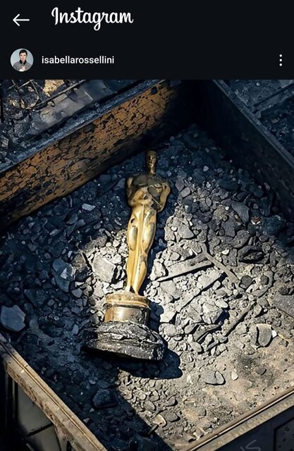 این عکس که توسط افرادی مانند ایزابلا روسلینی به اشتراک گذاشته شده است، مجسمه جایزه اسکار را نشان می دهد که روی آوار افتاده است.