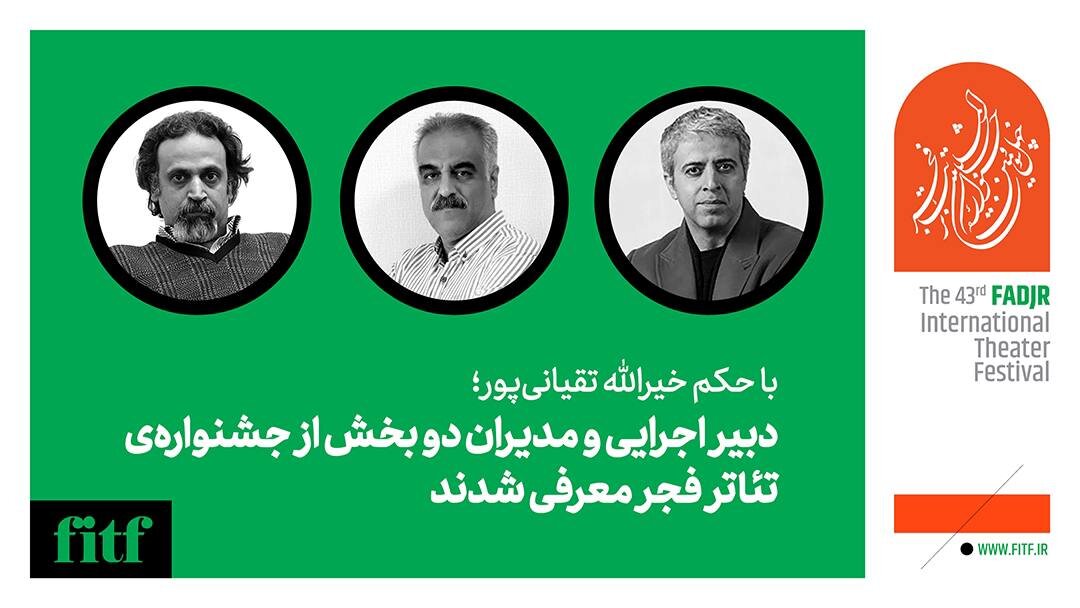 به گزارش خبرگزاری فارسیرو به نقل از دفتر رسانه ای اداره کل هنرهای نمایشی، خیرالله تقیانی پور دبیر چهل و سومین جشنواره بین المللی تئاتر فجر طی حکمی سعید نجفیان را به عنوان دبیر اجرایی و محمودرضا رحیمی را به عنوان مدیر سایر هنرهای نمایشی منصوب کرد. بخش و ایوب آقاخانی به عنوان مدیر چهل و سومین جشنواره بین المللی تئاتر فجر، نمایشنامه نویسی جشنواره تئاتر فجر را منصوب کردند.