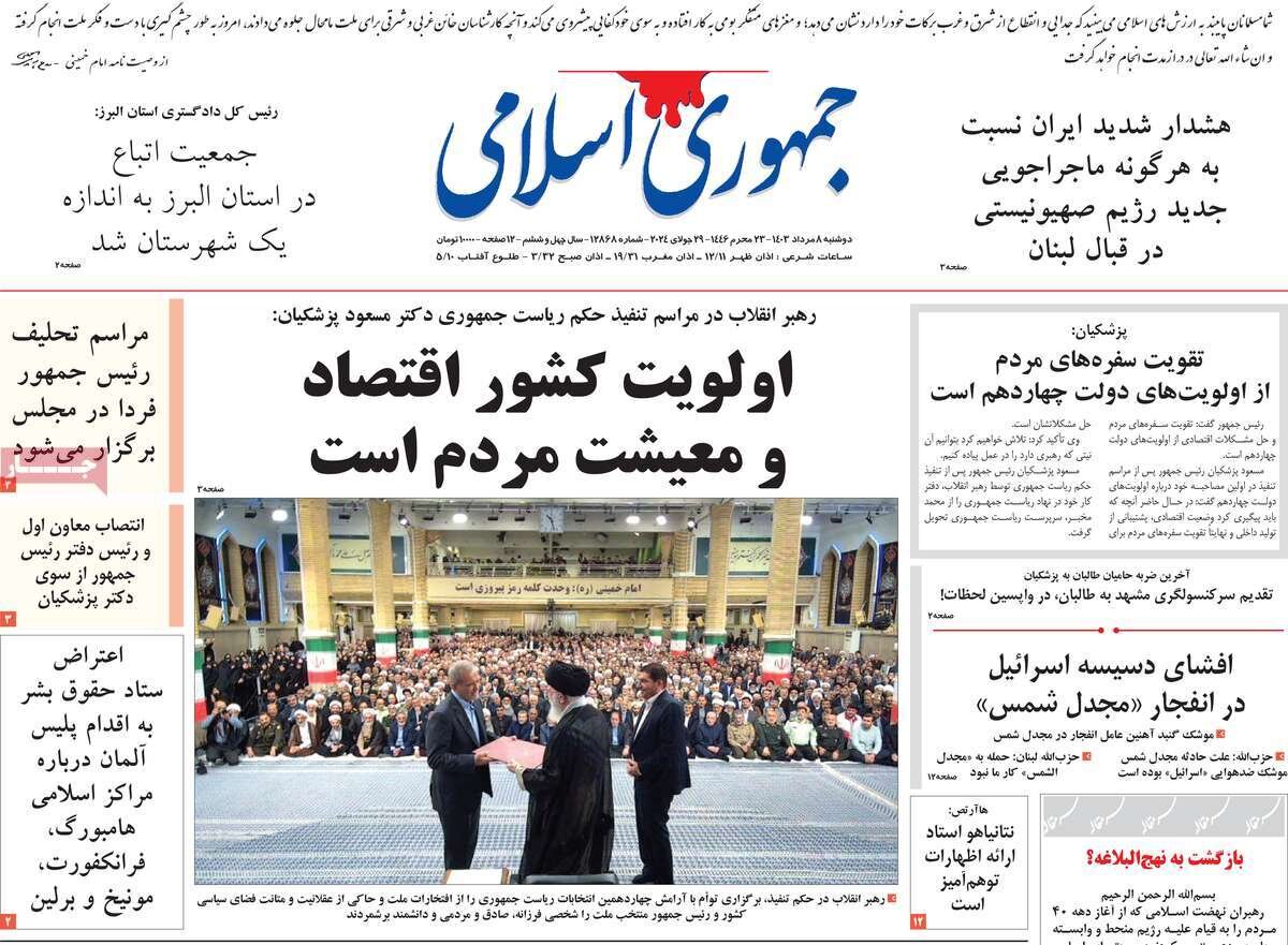 مراسم اعدام چهاردهمین رئیس جمهور، عنتاب، معاون اول رئیس جمهور و رئیس سازمان نظام پزشکی و… یکی از سرفصل های مطبوعات فعلی است.