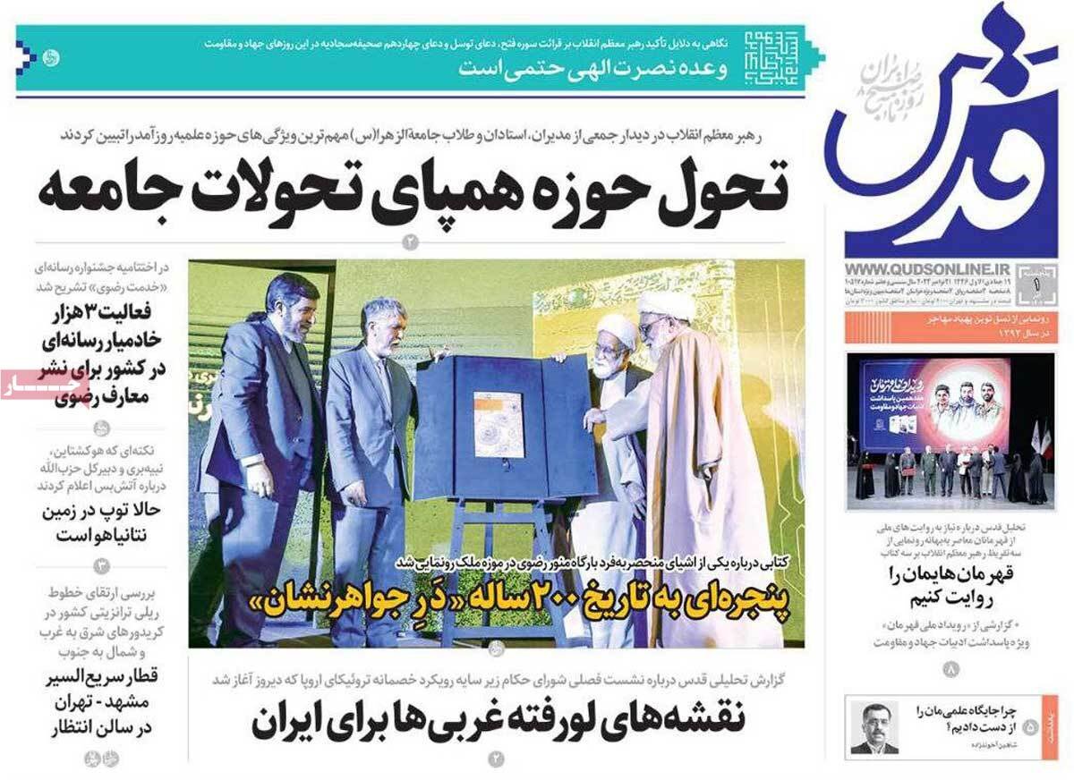 از جمله عناوین مطبوعات کنونی می توان به سخنان رهبر معظم انقلاب مبنی بر لزوم تحول در این حوزه، تصمیم شورای حکام در مورد انرژی هسته ای ایران و … اشاره کرد.