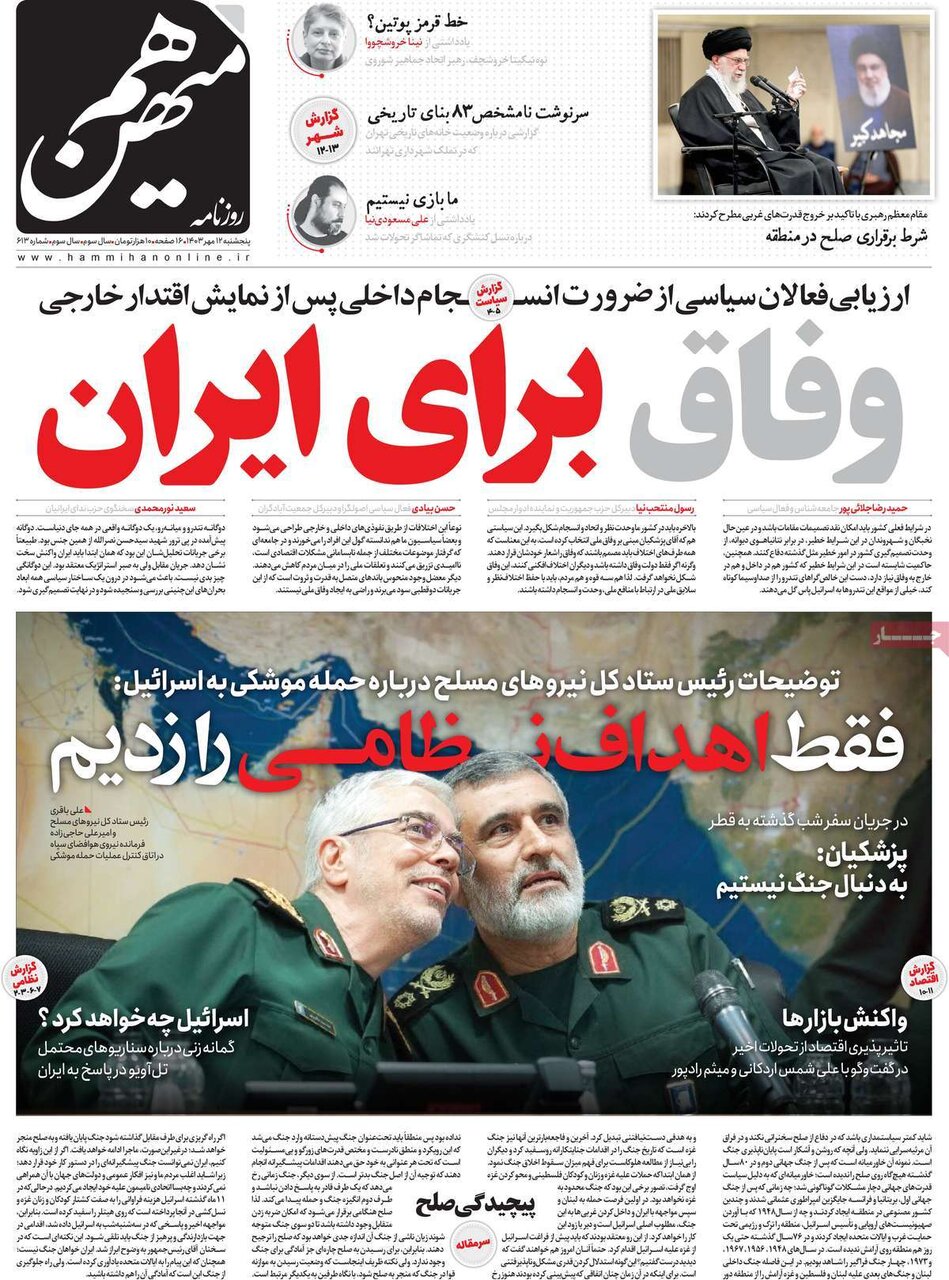 صفحه اول روزنامه های ۲۲ اردیبهشت ۱۴۰۳.