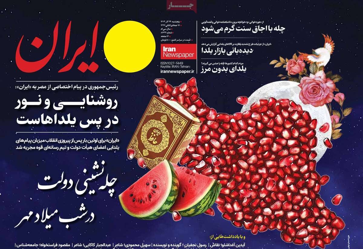 سفر رئیس جمهور به مصر، تدارک شب یلدا و… از سرفصل های مطبوعات فعلی است.