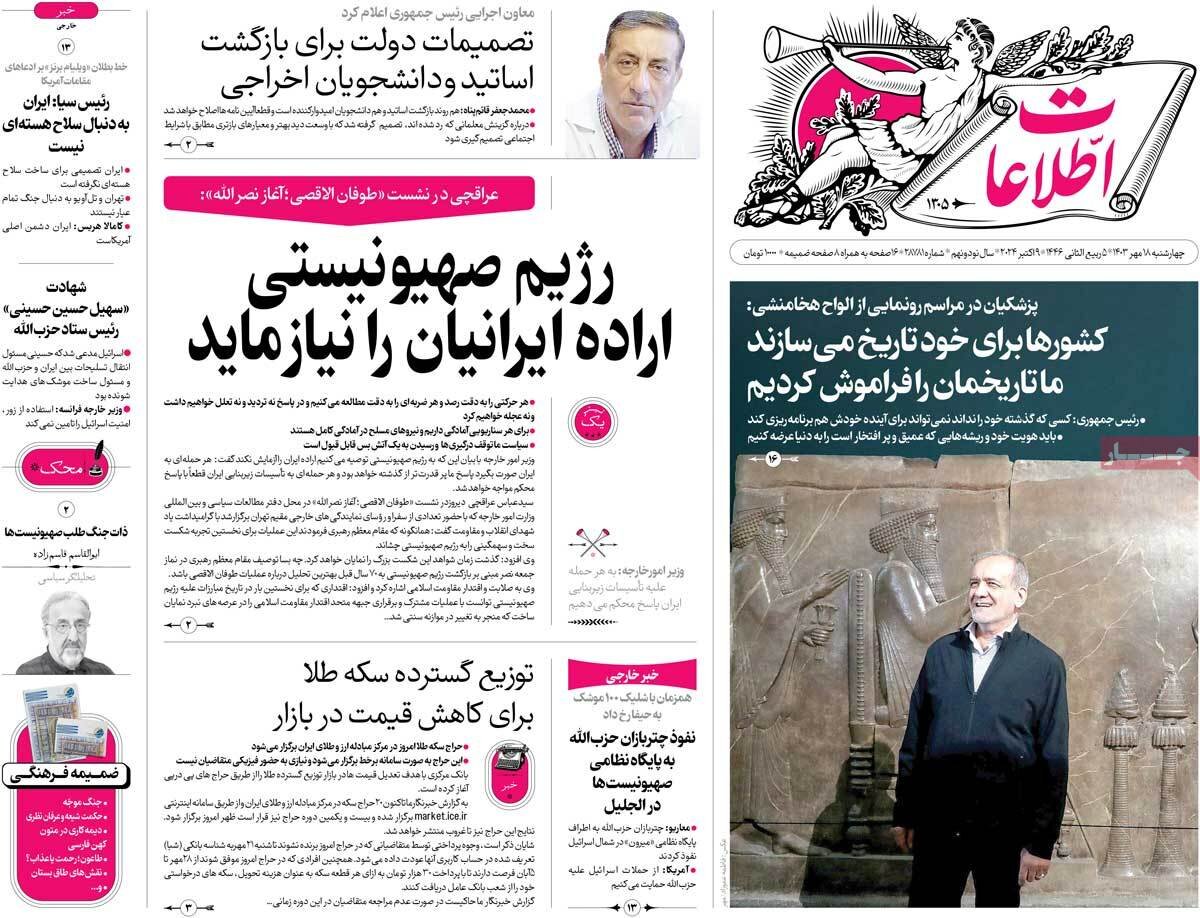 صفحه اول 4 روزنامه از شنبه 27 مهر 1403.