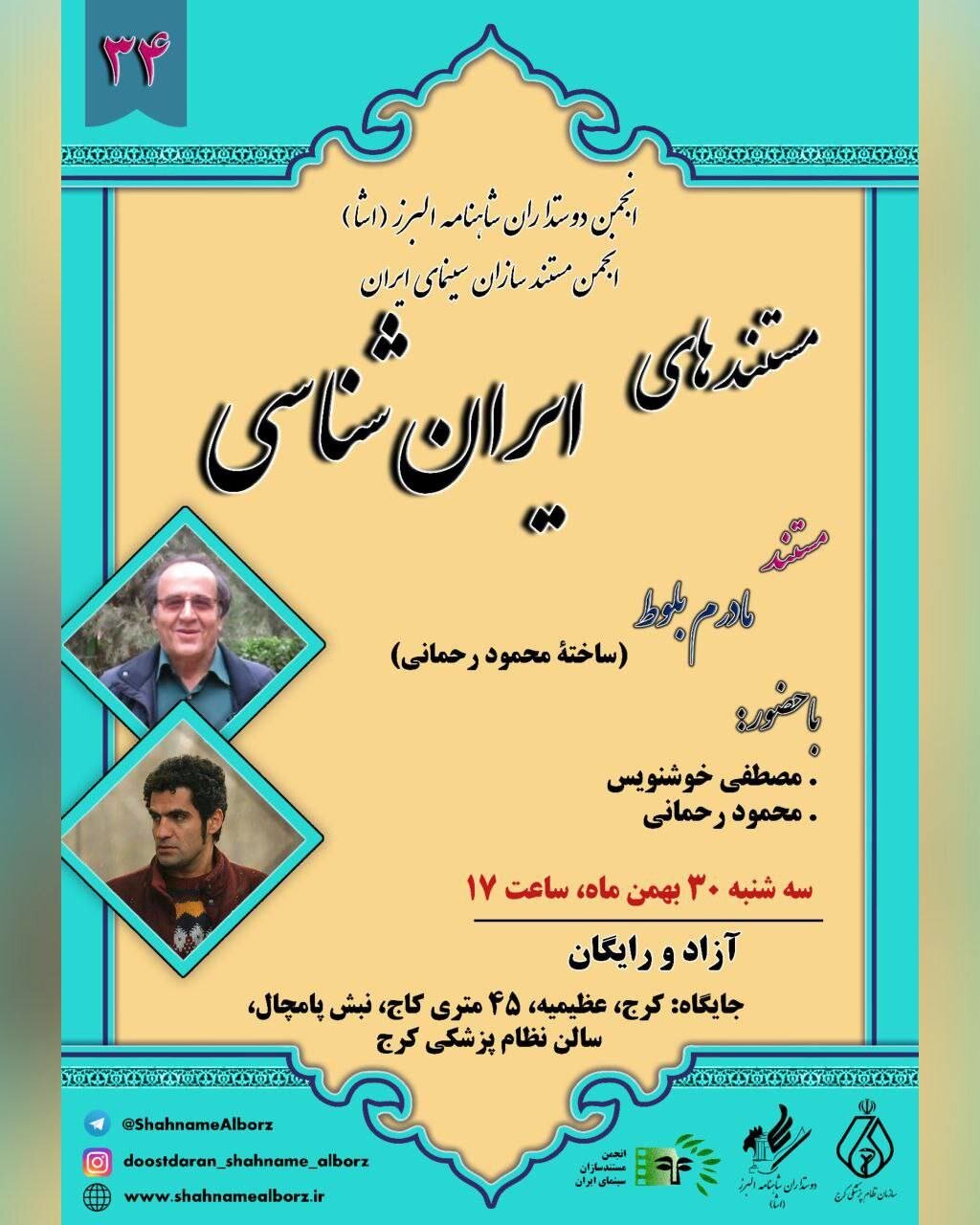 مستند “مادر من بلوط” ساخته محمود رحمان در ساعت 9 بعد از ظهر روز سه شنبه 23 فوریه در سالن سیستم پزشکی Karaj منتشر می شود.