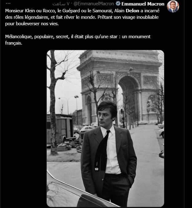 ماکرون رئیس جمهور فرانسه: دلون کاری کرد تا دنیا بتواند او را در خواب ببیند