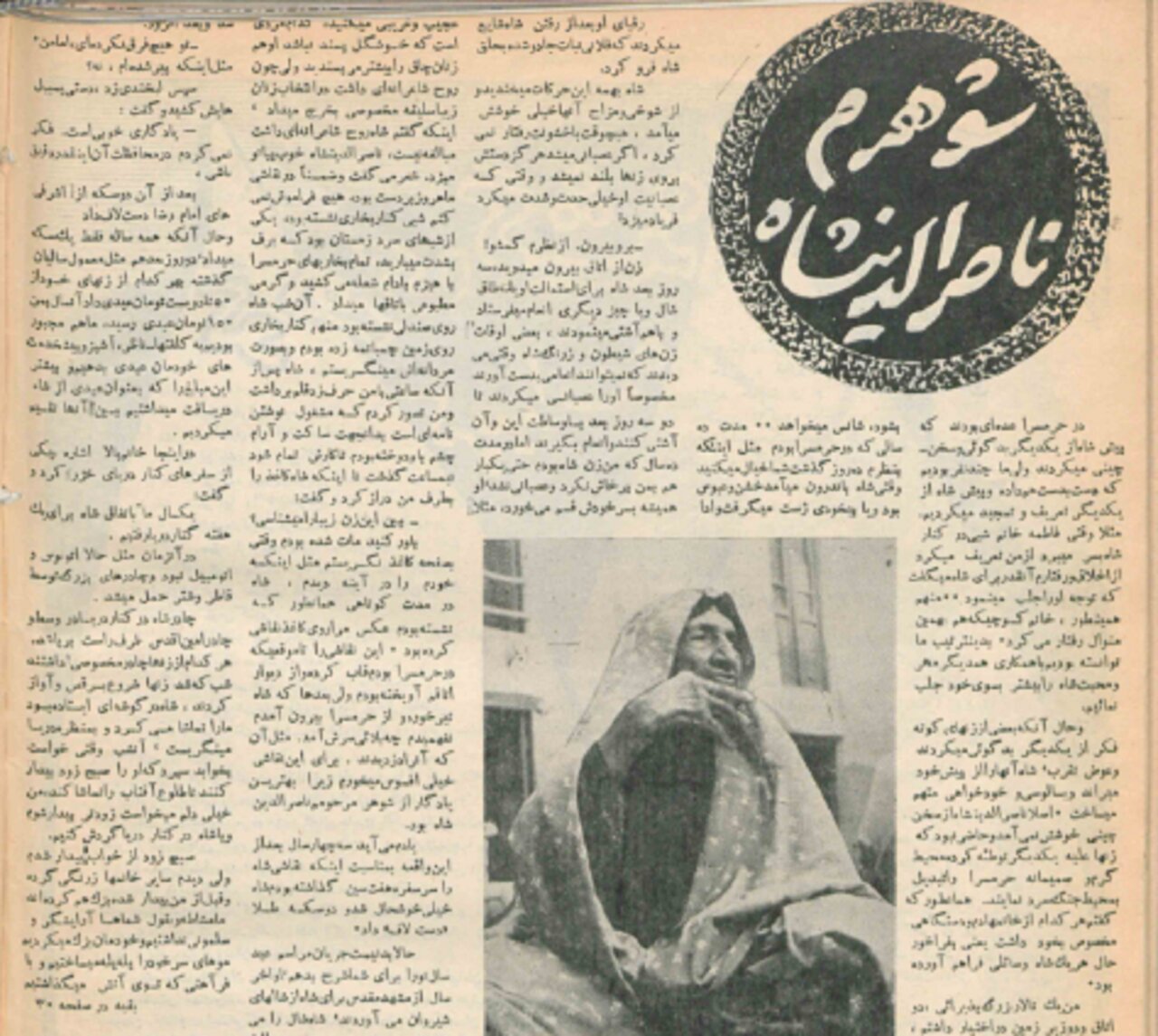 به گزارش خبرگزاری اخبار آنلاین، در آخرین هفته مرداد 1336، درست 61 سال پس از کشتن ناصرالدین شاه قاجار توسط میرزا رضا کرمانی، خبرنگار هفته نامه موضوع جالبی پیدا کرد: او توانست یکی از کنیزهای ناصرالدین شاه قاجار را پیدا کند. «جواهر حاج صالح» را «خانم بالا» می گفتند. او یکی از 64 بانوی حرمسرای ناصری و به مدت 10 سال همسر شرعی شاه شهید بود. حالا در تابستان 1336 در 95 سالگی در یکی از اتاق های کوچک چهار نفره زندگی می کرد. دو متری در خانه ای دورافتاده در گلوبندک نیز اثر مهربانی یک زن خوب را مجانی به او دادند و به عنوان عضوی از خانواده تا پایان عمر در میان آنها سپری می کند. خانم بالا حاضر شد خاطرات خود را از حرمسرای ناصری بیان کند. آنچه در ادامه می خوانید، قسمت چهارم خاطرات وی به نقل از مجله «Informacion Semanal» مورخ 8 شهریور 1336 است:
