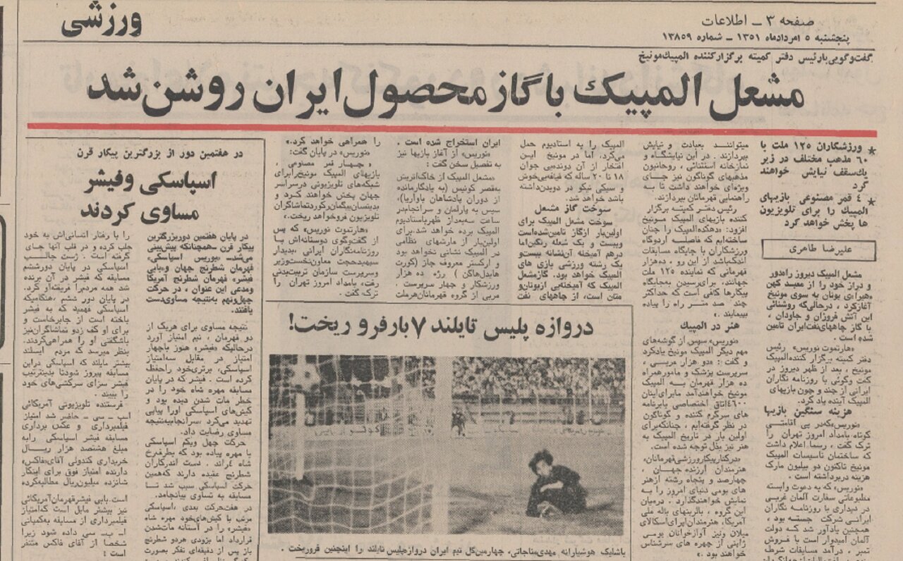 به گزارش خبرگزاری اخبار آنلاین، روز چهارشنبه 4 آگوست 1972 مشعل المپیک مونیخ سفر طولانی خود را از معبد باستانی “هیرا” در یونان به مونیخ آغاز کرد. نکته جالب این است که برای روشن کردن این آتش از گاز چاه های نفت ایران استفاده شده است. روز بعد روزنامه خبر در این باره نوشت: