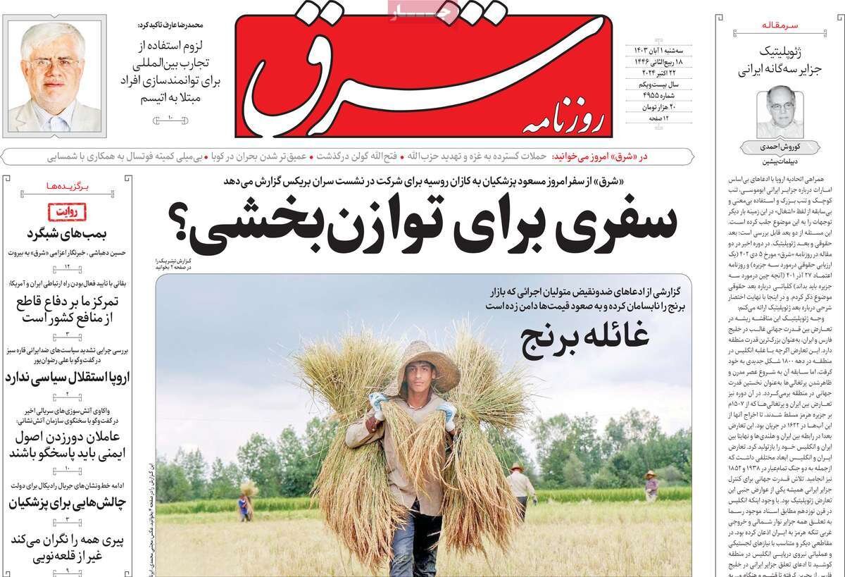 سفر پزشکان به مسکو، ادامه انتقاد از انتصاب پزشکان در دولت و… از سرفصل های مطبوعات فعلی است.