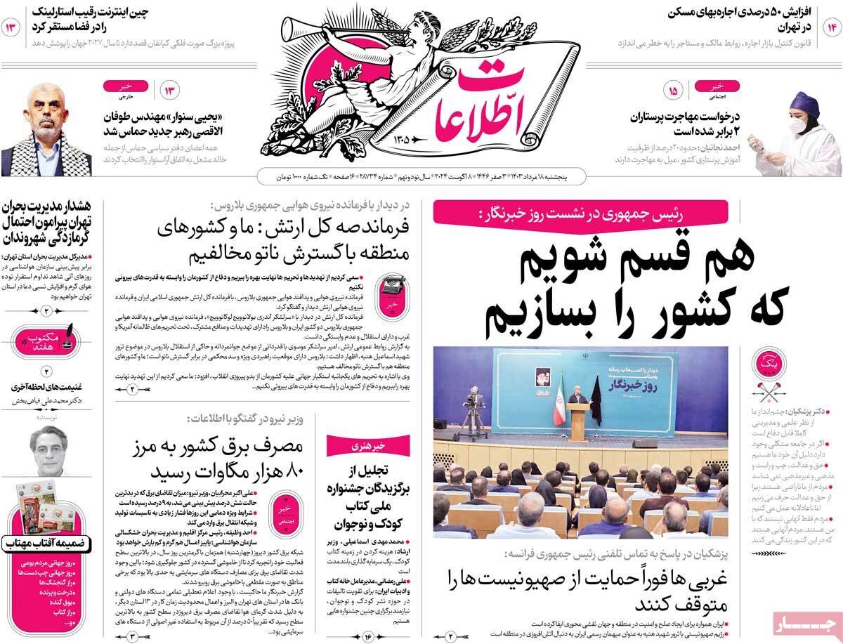 اظهارات رئیس جمهور صحنان در جمع رسانه ها، آخرین تلاش ها برای تکمیل کابینه و… تیتر اول مطبوعات امروز است.