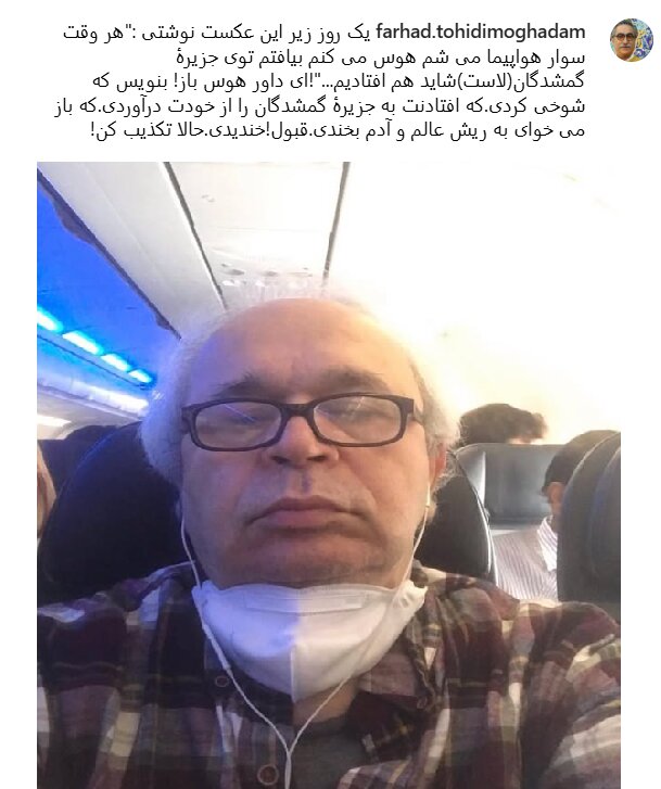 به گزارش خبرگزاری فارسیرو، فرهاد توحیدی فیلمنامه نویس با انتشار پستی در اینستاگرام برای ابراهیم نبوی نوشت: یک روز زیر عکست نوشتی: «هر وقت سوار هواپیما می شوم، دلم می خواهد در جزیره گمشده (گمشدگان) بیفتم. شاید زمین خوردیم…» ای قاضی دمدمی مزاج! بنویس که شوخی کردی که تصمیم گرفتی در جزیره گمشده ها افتادی. می خواهی دوباره به ریش دنیا بخندی! قبول!