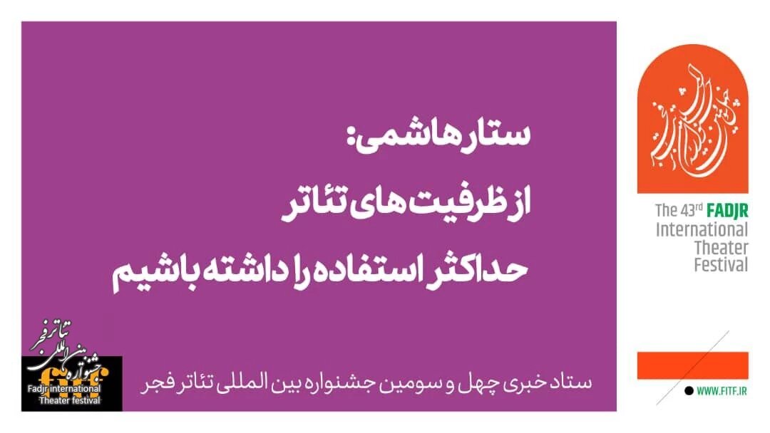 در یک سخنرانی مختصر ، وزیر ارتباطات و فناوری اطلاعات ، ستار هاشمی تئاتر را به عنوان یک مأموریت مشترک با زمینه ارتباطات توصیف کرد و گفت: “من فکر می کنم که هنر و تئاتر به طور خاص یک مأموریت مشترک با زمینه ارتباطات دارند ، که این است که افراد ، خانواده ها و فرهنگ ها با یکدیگر ارتباط دارند و یک زمینه ارتباطی متفاوت از زیرساخت های ارتباطی تشکیل می دهند.
