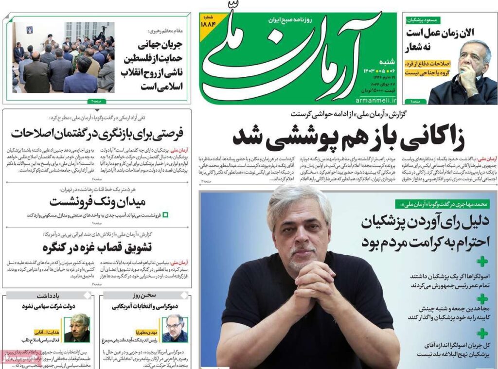 صفحه اول روزنامه های شنبه 15 مرداد 1403.