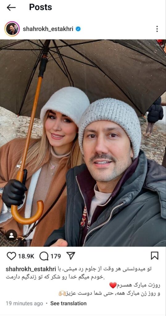 عاشقانه جدید شاهرخ اشتاخاری و همسرش در روز زن