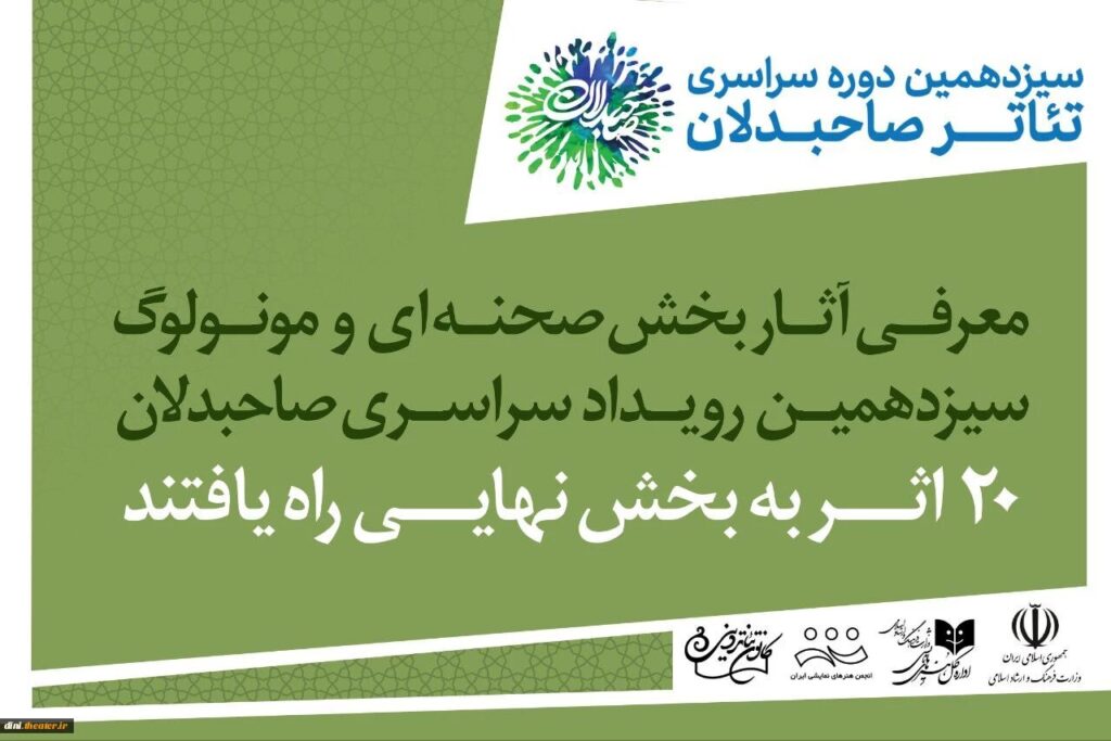 معرفی آثار بخش دیدنی سیزدهمین رویداد ملی صاحبدلان/ 20 اثر به قسمت پایانی رسید.