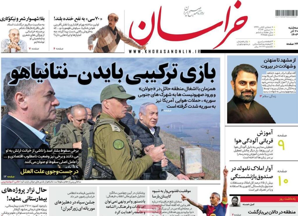 صفحه اول روزنامه های سه شنبه بیستم شانس 1403.