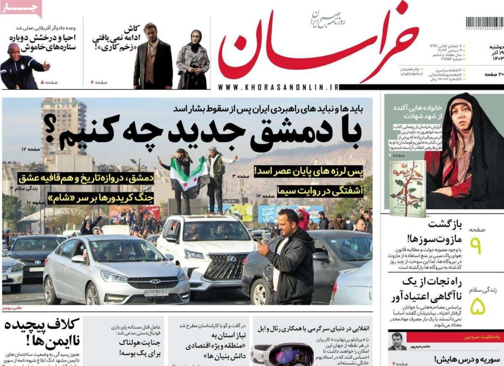 تحلیل دلایل شکست بشار اسد و آینده خاورمیانه تیتر اصلی روزنامه های امروز است.