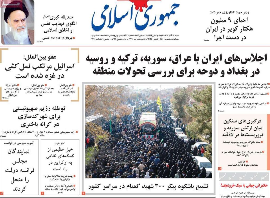 صفحه اول روزنامه های شنبه هفدهم آذر 1403.