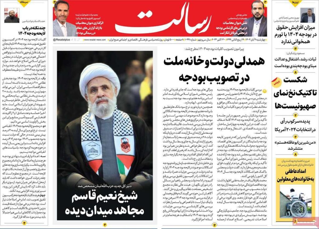 سخنان رئیس جمهور درباره شفافیت بودجه در جلسه علنی مجلس، بازتاب انتخاب دبیرکل جدید حزب الله و… از عناوین برجسته روزنامه های امروز است. ۲۳۳۰۲