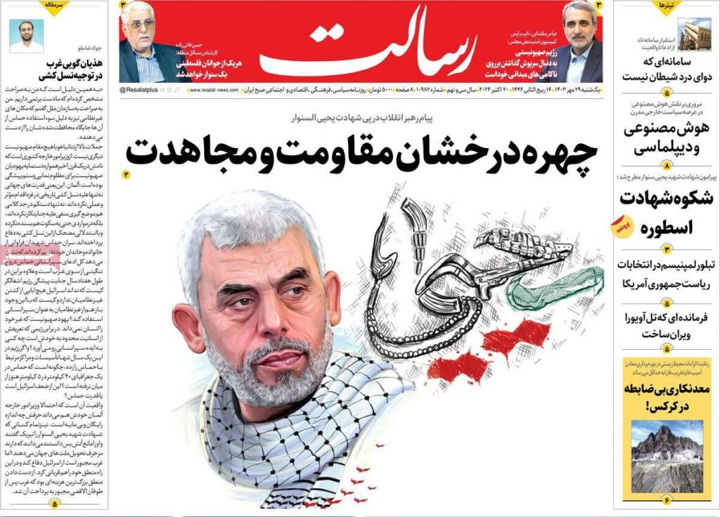 پیام رهبر معظم انقلاب به مناسبت شهادت یحیی سنور، واکنش به بیانیه اتحادیه اروپا در مورد جزایر سه گانه، اظهارات ظریف در اصفهان و… از جمله عناوین مطبوعات کنونی است.