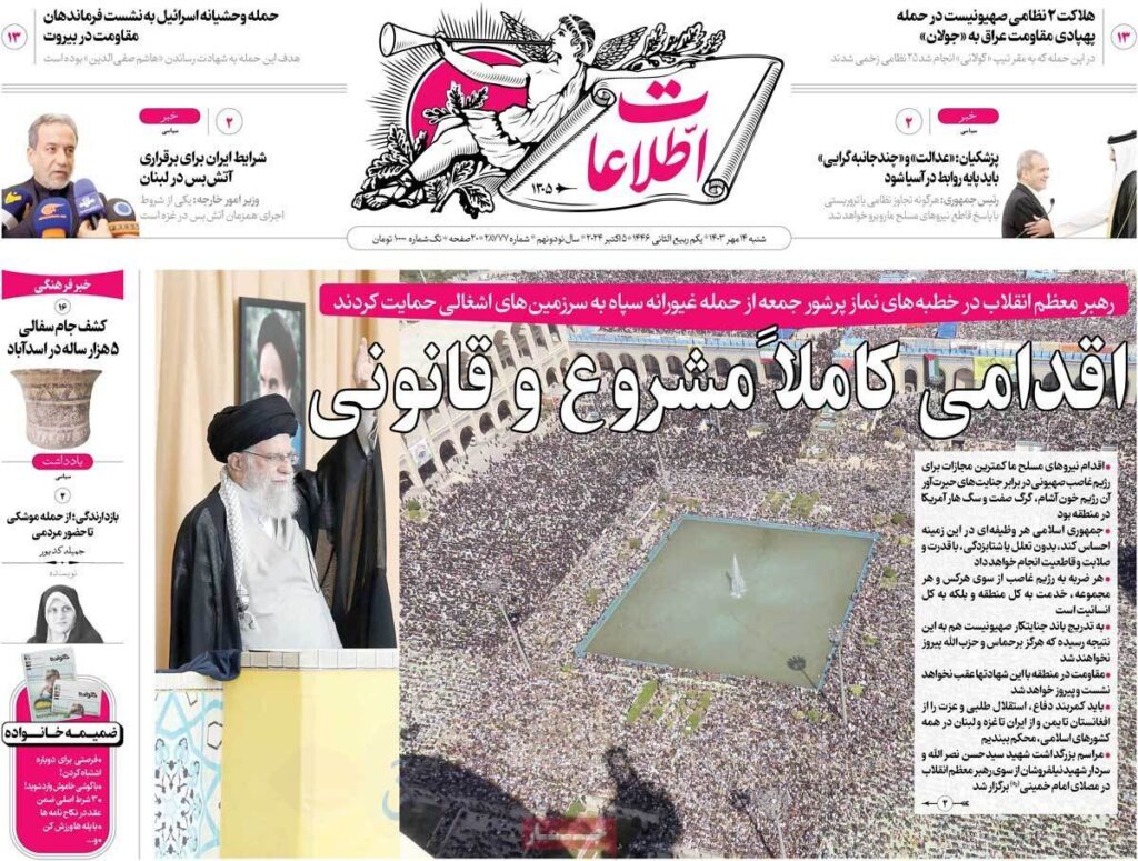 صفحه اول روزنامه های شنبه 23 مهر 1403/ نماز جمعه نصر تیتر یک شد.
