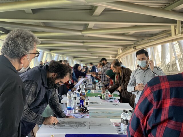 یک آبرنگ 10 متری با نماد صلح بر روی پل طبیعت نقاشی شد / آثاری از 18 کشور