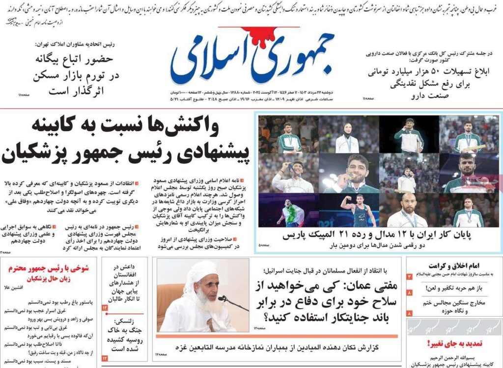 واکنش به معرفی اعضای کابینه پیشنهادی پزشکی تیتر برجسته همه روزنامه های امروز است.