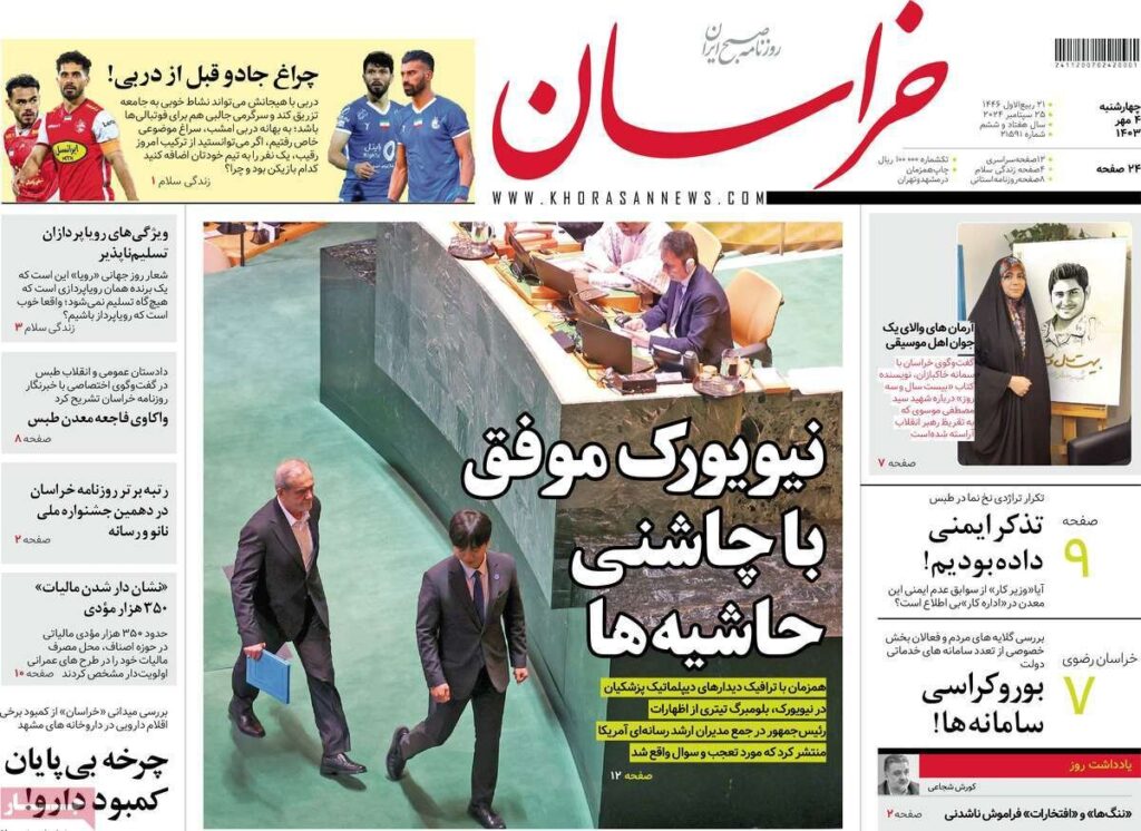 حواشی پررنگتر متن سفر رئیسجمهور به نیویورک، جنایت اسرائیل در لبنان و… تیتر روزنامههای امروز را نشان میدهد.