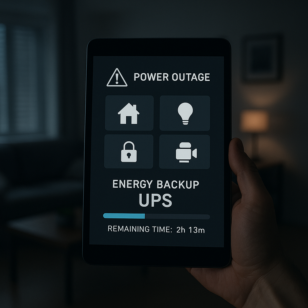استفاده از سیستم UPS (منبع تغذیه بدون وقفه) یکی از راهکارهای مؤثر برای حفظ عملکرد خانه هوشمند در زمان قطع برق است. این سیستمها معمولاً به هاب مرکزی، مودم اینترنت و تجهیزات اصلی متصل میشوند تا در صورت قطع برق، تا چند ساعت برق آنها را تأمین کنند.